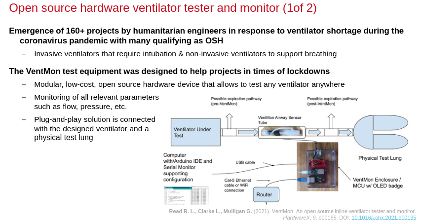 The VentMon[11] project tackled this problem by creating an open hardware testing device and an IOT platform for openly recorded and publicly shared testing data.