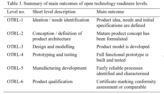 This way iterative and incremental way of developing technology is well-known in software[1]. After many iterations and testing, a prototype can be selected for further development. The selected design, that solves a need but is not yet complete nor ready to be replicated (usually because some parts are not well documented or requires a lot of manual adjustments), is sometimes called a demonstrator. When the design and documentation are polished and are ready to be used by hardware producers, the hardware is usually labeled as a market-ready product[2].