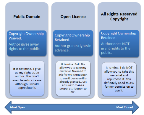 Fig. 29 Key differences between public domain, open licences and all rights reserved copyright [3].#